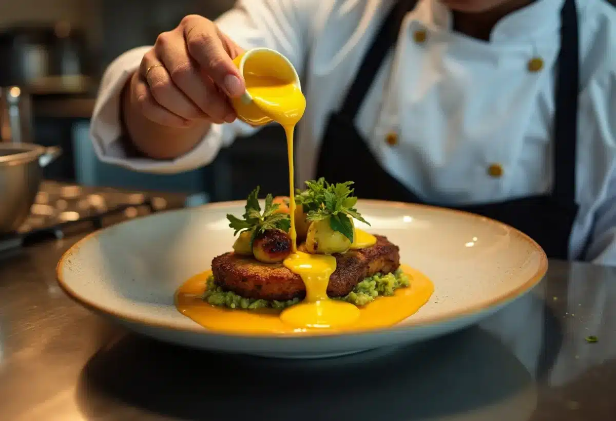 Les grands chefs partagent leurs secrets pour faire ressortir toute la richesse du safran dans une sauce. Chef Damien insiste sur la qualité du safran utilisé. Le safran, reconnu comme l’or rouge de la cuisine, doit être choisi avec soin. Privilégiez des filaments plutôt que de la poudre pour éviter les contrefaçons.